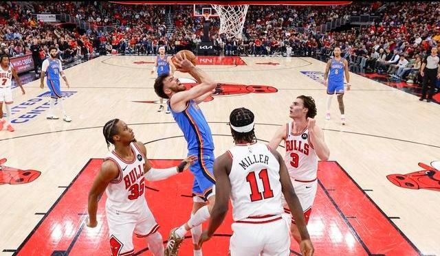 比赛伊始,双方并没有过多的试探,迅速进入了高强度的对抗节奏。公牛队的首发控卫塞克斯顿成为了主队进攻端的箭头人物,他利用自己的速度优势频频冲击雷霆的内线,整场比赛下来,他交出了20分1篮板2助攻的成绩单。塞克斯顿的得分爆发力让公牛队在进攻端保持着竞争力,但他单一的终结方式在雷霆严密的防守体系下,逐渐显得独木难支。与之相呼应的是公牛内线亚布塞莱的出色发挥,这位在内线苦苦支撑的大个子全场贡献了18分12篮板的两双数据,外加1抢断1盖帽。亚布塞莱在攻防两端的强硬表现,是公牛队能够在大部分时间内咬住比分的关键所在。